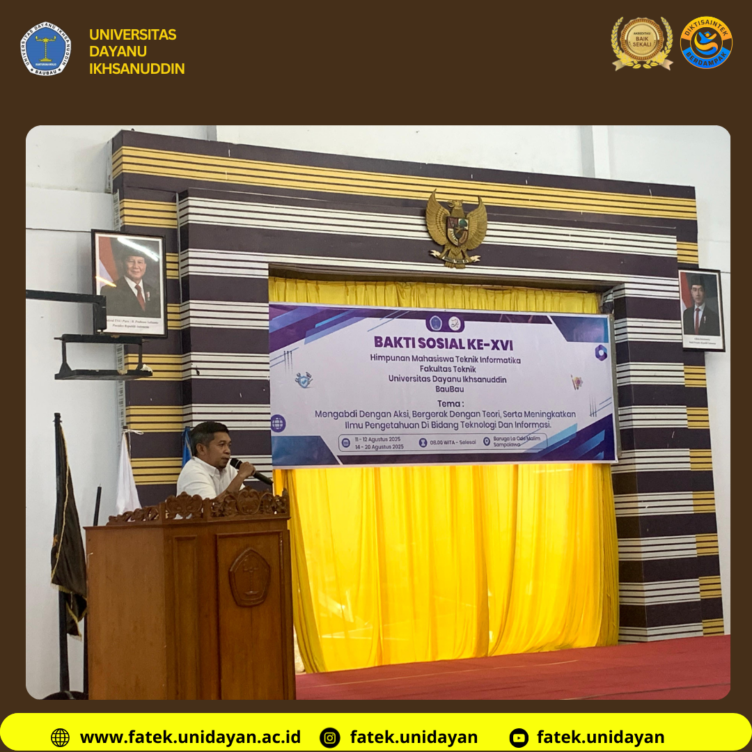 Fakultas Teknik Universitas Dayanu Ikhsanuddin (UNIDAYAN) melalui Program Studi Teknik Informatika resmi menggelar kegiatan Bakti Sosial Mahasiswa Teknik Informatika ke-XVI yang dibuka dalam suasana penuh semangat kebersamaan. Kegiatan ini telah menjadi program tahunan Himpunan Mahasiswa Teknik Informatika (HMTI) yang konsisten dilaksanakan sebagai wujud pengabdian nyata kepada masyarakat. Melalui kegiatan ini, mahasiswa tidak hanya mengimplementasikan ilmu yang diperoleh di bangku kuliah, tetapi juga mengasah keterampilan sosial, kepemimpinan, dan kerja sama tim dalam situasi nyata di lapangan.
