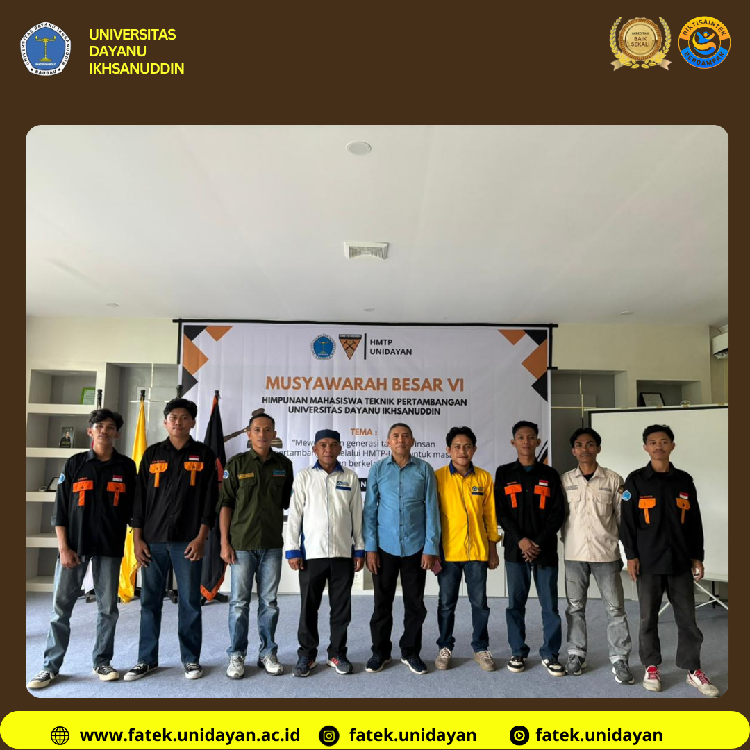 Musyawarah Besar (MUBES) Ke VI Himpunan Mahasiswa Teknik Pertambangan (HMTP) Universitas Dayanu Ikhsanuddin resmi digelar pada Senin 17-20 November 2025, bertempat di Aula Perpustakaan Kota Baubau. Kegiatan tahunan ini menjadi momen strategis yang selalu dinantikan oleh seluruh mahasiswa Teknik Pertambangan, karena melalui forum inilah arah organisasi ditetapkan, evaluasi kinerja dilakukan, dan kepengurusan baru dibentuk untuk melanjutkan estafet perjuangan HMTP UNIDAYAN. Mengusung tema besar “Mewujudkan Generasi Tangguh Insan Pertambangan Melalui HMTP-UND untuk Masa Depan Berkelanjutan,” MUBES ke VI kali ini menghadirkan visi besar pembentukan generasi pertambangan yang unggul dan siap menghadapi tantangan dunia industri modern.