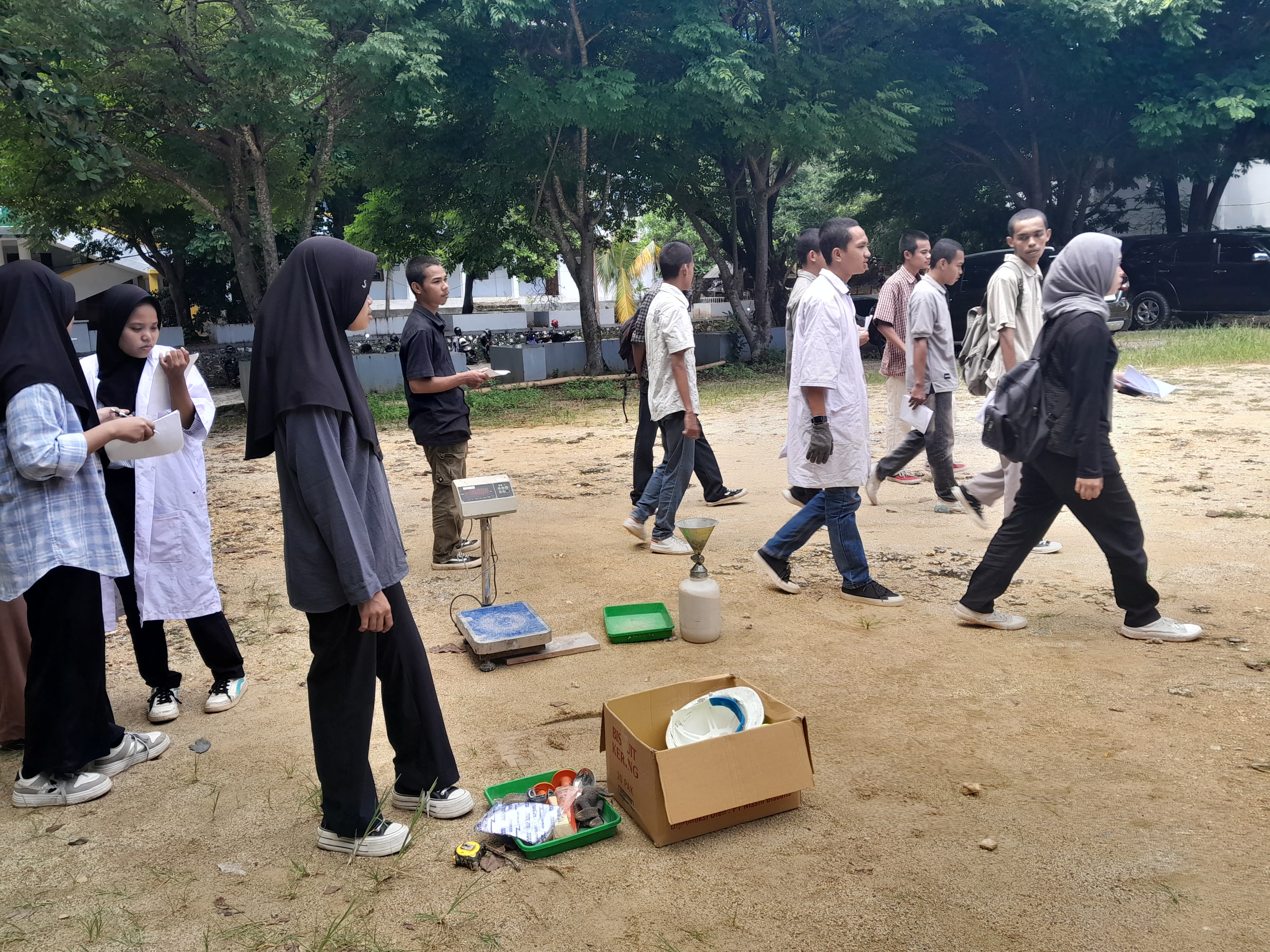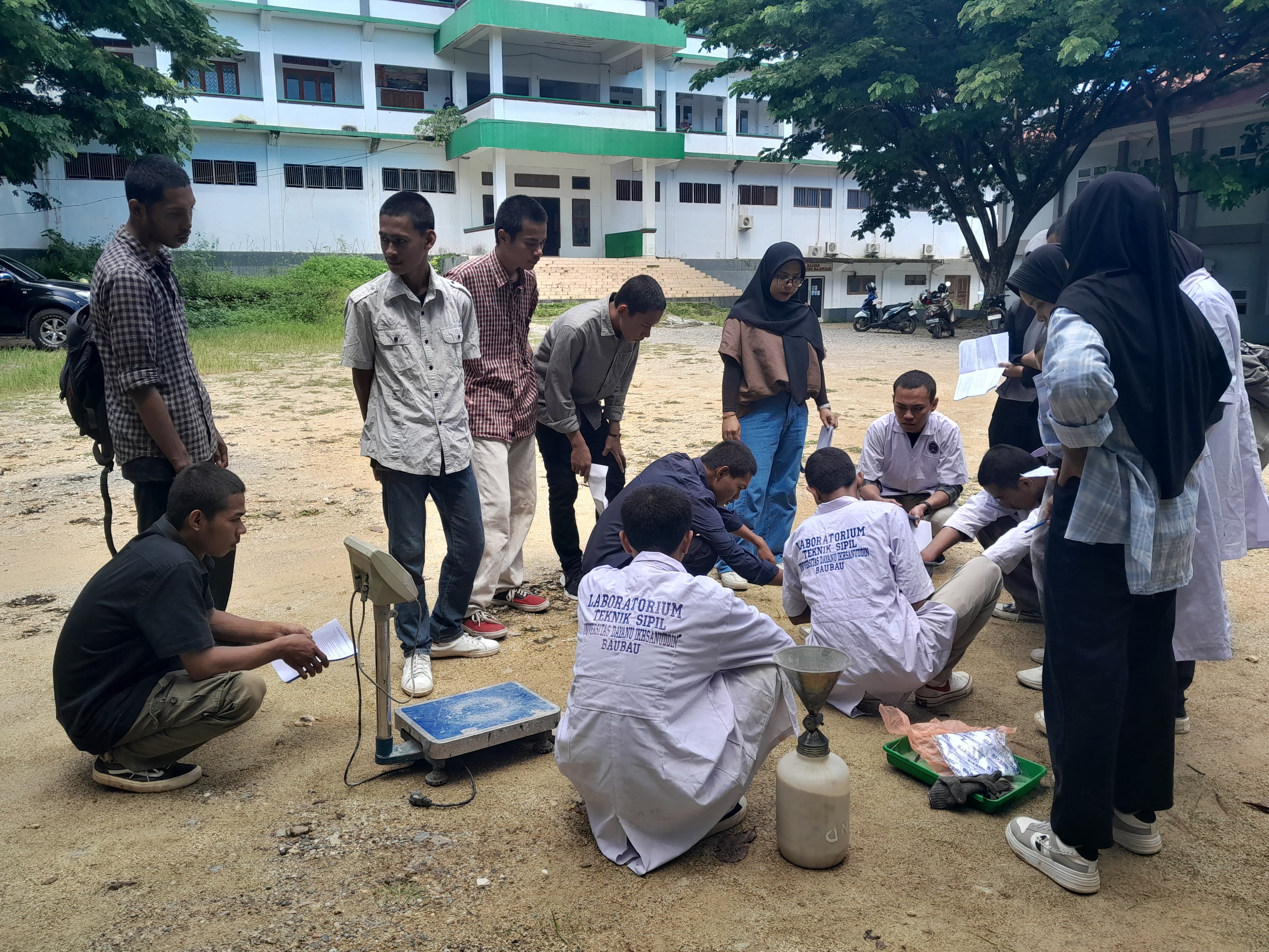 Mahasiswa Teknik sipil melakukan praktek untuk mengukur ketebalan tanah yang ada di kampus unidayan, praktikum ini adalah termasuk perkuliahan wajib yang diketahui oleh mahasiswa teknik sipil di karenakan praktikum ini sangat penting untuk mengetahui struktur ketebalan tanan.