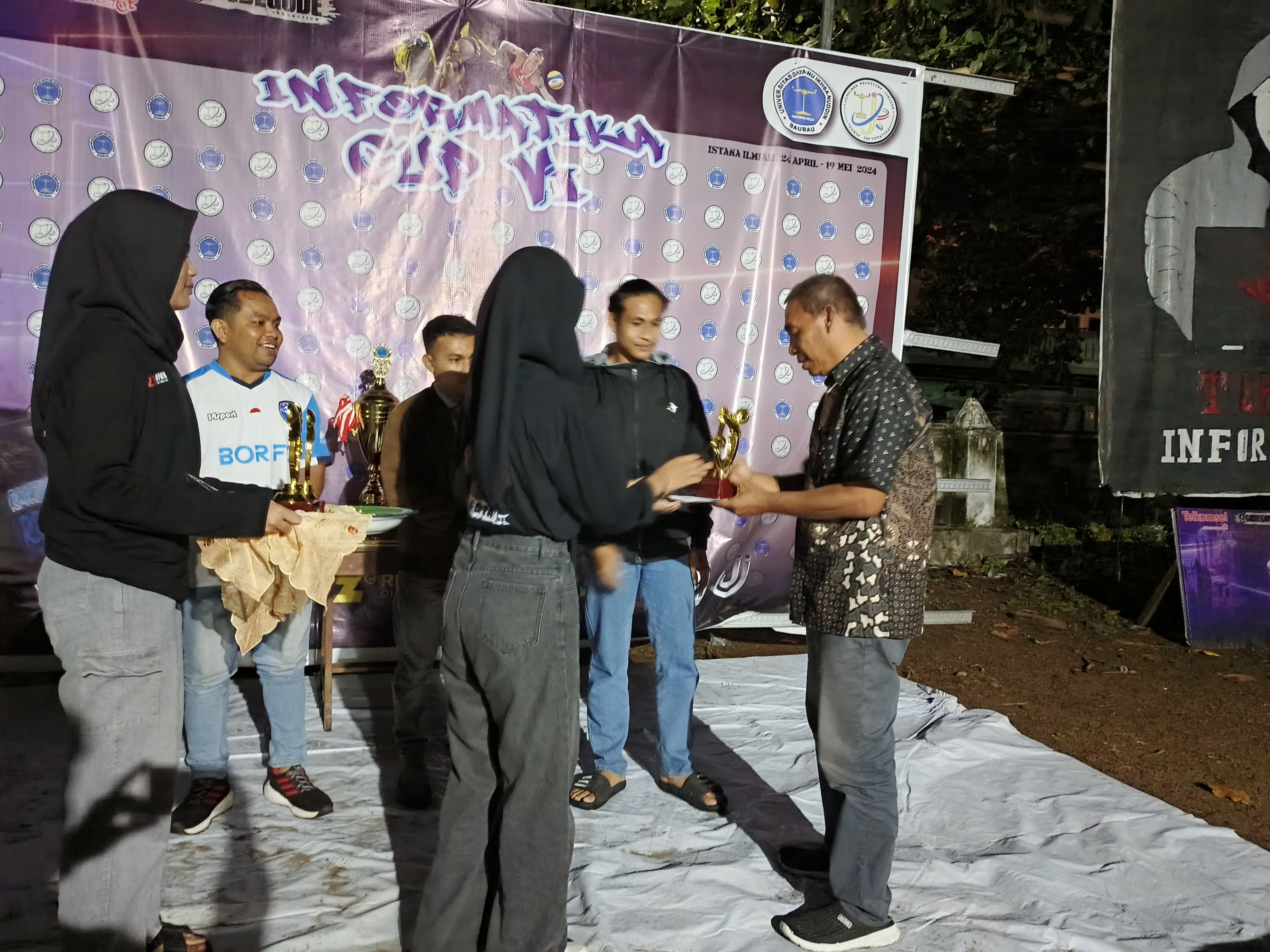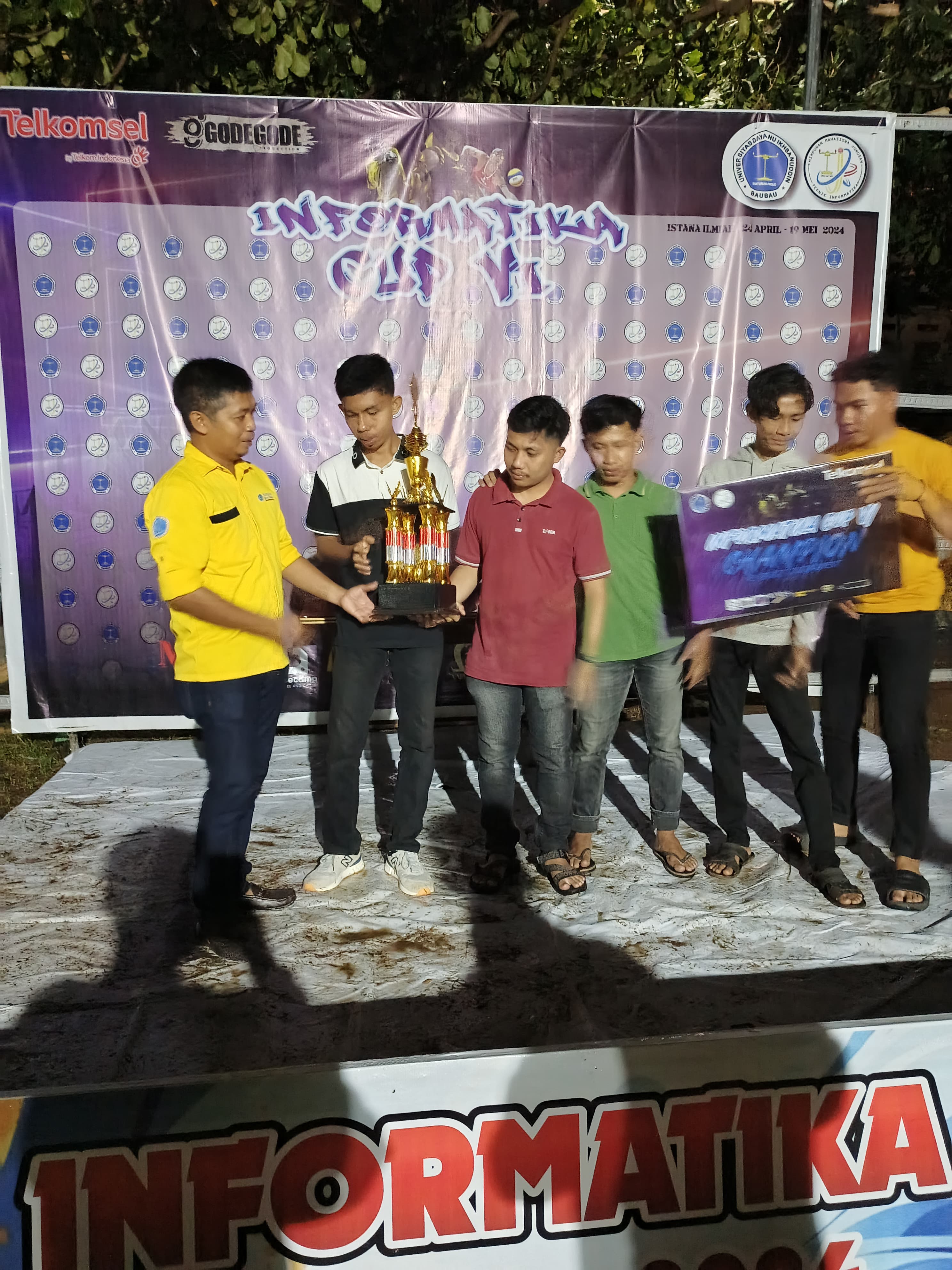 Informatika Cup Ke VI telah sampai pada tahapan akhir kegiatan yaitu penutupan yang dimana telah berlangsung selama kurang lebih sebulan, kegiatan ini di peruntukan khusus Kelugara Besar Teknik Informatika, dalama hal ini Alumni teknik Informatika turut ikut serta dalam kegeitan ini. Dalam Kegiatan Informatika cup ini, ada dua cabang olahraga yang di pertandingkan, yaitu cabang olahraga sport (futsal) dan cabang olahraga E-sport (mobile legend), masing-masih telah mendapatkan pemenangnya, untuk kegiatan fultsal di menangkan oleh angkatan 2010 selaku alumni Teknik Informatika sedangan kegiatan mobile legend di menangkan oleh pihak program studi yang dimana para pemainya diambil dari tiap angkatan aktif.