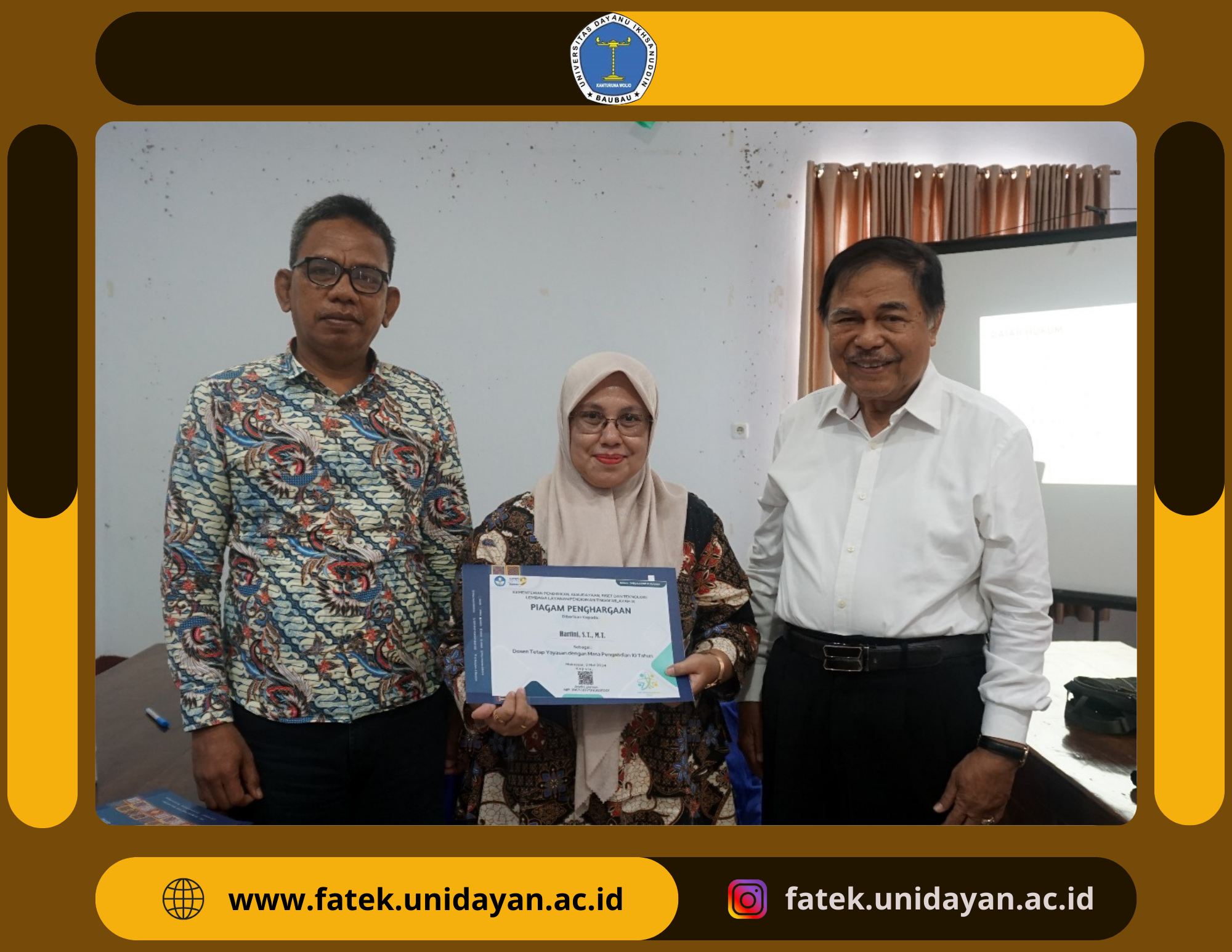 Dalam rangka memperingati hari Pendidikan Nasional Tahun 2024 dengan Tema “Bergerak Bersama, Lanjutkan Merdeka Belajar”, Lembaga Layanan Pendidikan Tinggi Wilayah IX melalui Rektor Unidayan Ir. L.M. Sjamsul Qamar, M.T., IPU memberikan penghargaan kepada dosen tetap yayasan yang telah mengabdi selama 10 Tahun, 20 Tahun, dan 30 Tahun, adapun dosen yang meraih penghargaan piagam pengabdian dosen tetap yayasan yaitu Asniati, S.T,.M.T dan Hartini, S.T,.M.T,