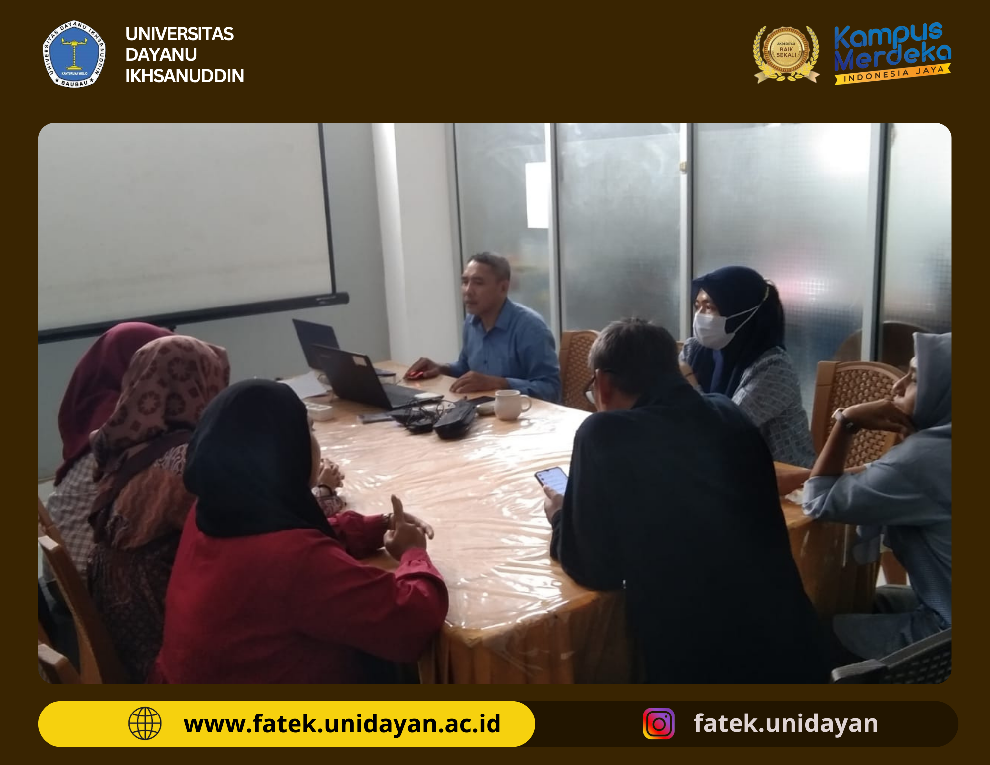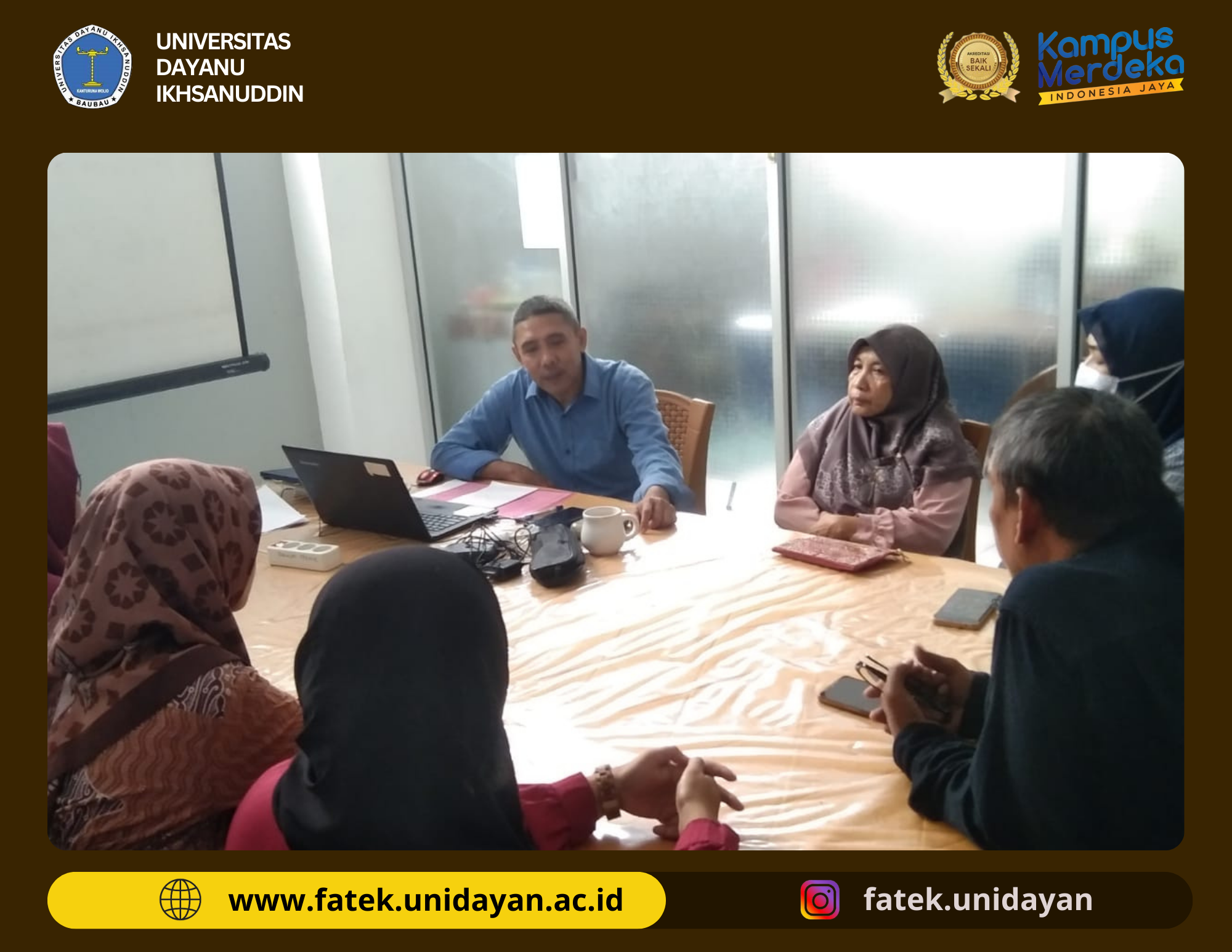 Fakultas Teknik Universitas Dayanu Ikhsanuddin mengadakan rapat rutin untuk memastikan kesiapan dokumen akreditasi program studi. Rapat tersebut Di pimpin oleh Dekan fakultas Teknik, dan dihadiri oleh wakil Dekan I, Wakil Dekan II dan Wakil Dekan III serta staf administrasi masing-masing program studi yang ada di fakultas teknik yang berperan penting dalam penyusunan dan pengecekan dokumen. Dalam rapat harian ini, setiap anggota tim memiliki tanggung jawab untuk melaporkan perkembangan tugas masing-masing dan mendiskusikan kendala yang dihadapi.