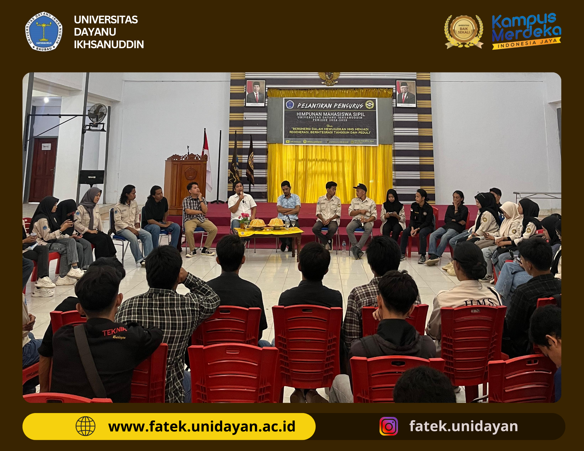Dalam sebuah momen yang bersejarah bagi Mahasiswa Teknik Sipil, merayakan pelantikan pengurus baru dan pelaksanaan Rapat Dengar Pendapat (RDP) yang menandai awal dari babak baru kepemimpinan dan partisipasi mahasiswa. La Ode Ardiansyah dan La Abdula, yang terpilih sebagai Ketua dan Wakil Ketua Himpunan Mahasiswa Sipil (HMS), masing-masing, membawa dengan mereka visi yang kuat dan komitmen untuk mewujudkan perubahan positif dalam komunitas ini.
