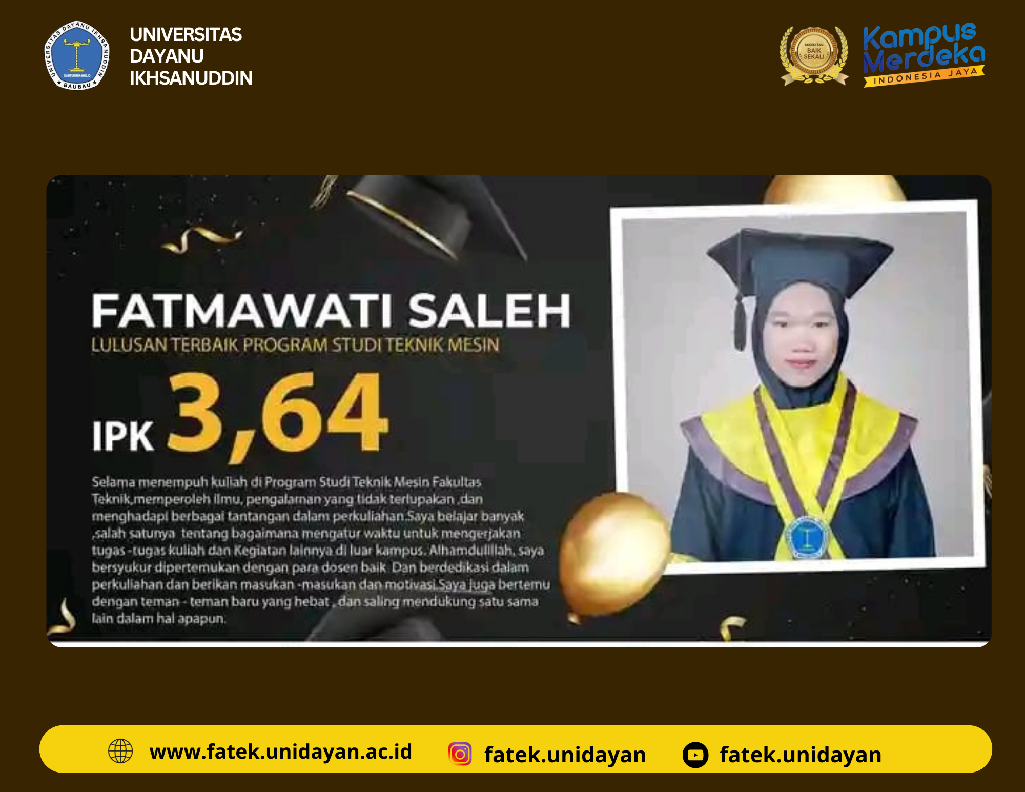 #UNIDAYAN #FakultasTeknik #LulusanTerbaik #Prestasi #Bangga