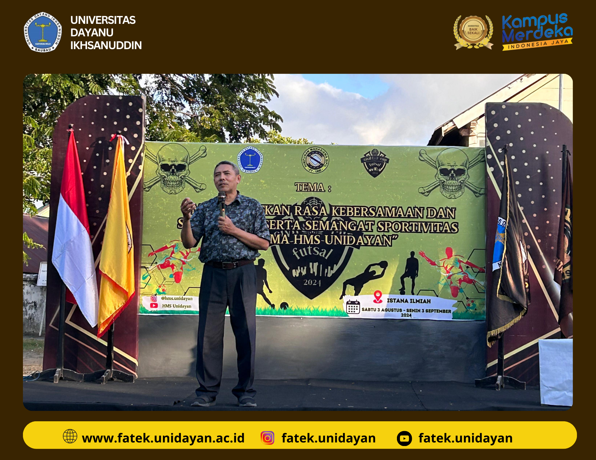 Selanjutnya, HMS UNIDAYAN turut berperan aktif dalam menyukseskan acara ini dengan berbagai kegiatan menarik dan kompetisi yang menantang, yang diharapkan dapat mendorong semangat sportivitas dan persahabatan di antara peserta. Acara ini juga diwarnai dengan berbagai penampilan menarik, yang semakin menambah semangat dan kegembiraan di kalangan semua yang hadir. Dengan semangat dan dedikasi yang tinggi, diharapkan SIPIL Cup tahun ini tidak hanya menjadi ajang olahraga yang berprestasi, tetapi juga sebuah perayaan kebersamaan yang menyatukan seluruh elemen Fakultas Teknik Universitas Dayan dalam satu tujuan yang mulia. Selamat berkompetisi dan semoga acara ini menjadi awal dari banyak momen sukses dan kebersamaan yang tak terlupakan!