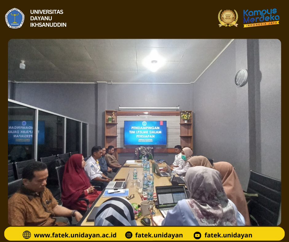 kegiatan pendampingan LP3LMK dalam rangka persiapan akreditasi Program Studi Teknik Informatika ini dihadiri oleh berbagai pihak yang sangat mendukung kelancaran proses akreditasi. Dekan Fakultas Teknik, dalam hal ini diwakili oleh Wakil Dekan III, Bapak Sarman, S.T., M.T., turut memberikan sambutan dan dukungan penuh terhadap kegiatan ini. Beliau menekankan pentingnya akreditasi sebagai salah satu indikator kualitas pendidikan yang harus terus ditingkatkan untuk mewujudkan visi Fakultas Teknik yang unggul. Keberadaan Kepala Program Studi Teknik Informatika, GPM Fakultas Teknik, serta UPM Teknik Informatika semakin memperkuat komitmen seluruh civitas akademika dalam menjalankan proses akreditasi yang transparan dan berkualitas.