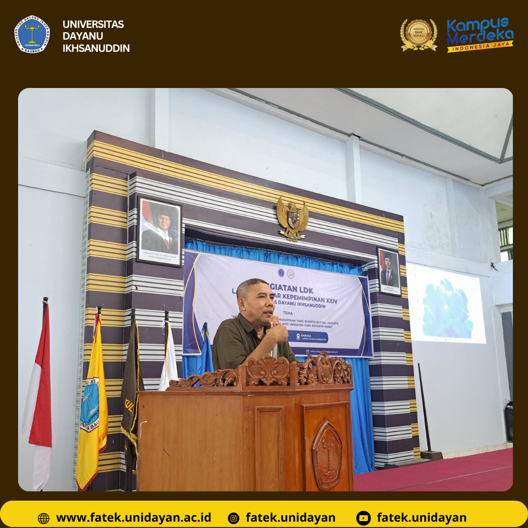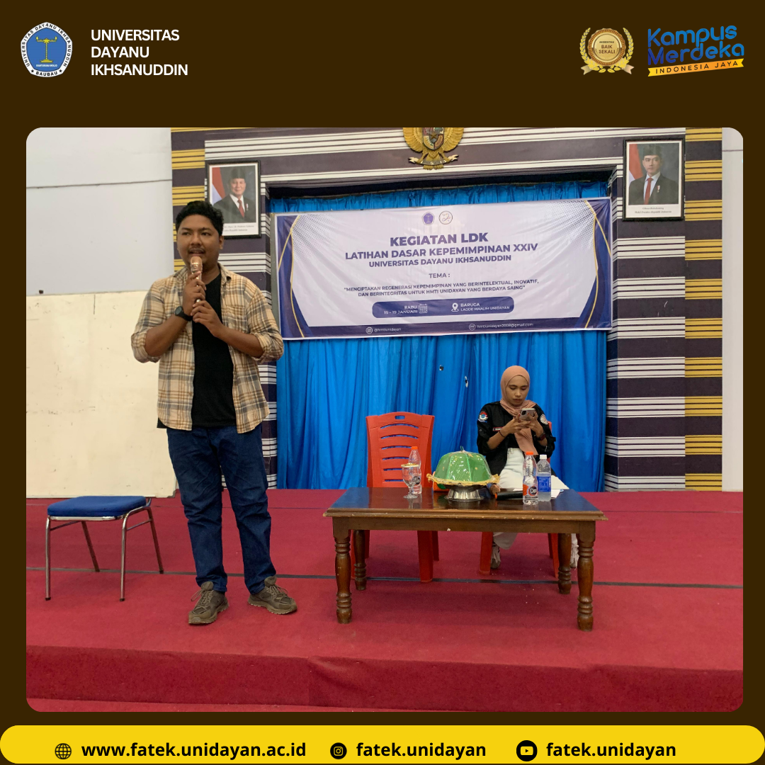 Kegiatan Latihan Dasar Kepemimpinan (LDK) ke-XXIV Himpunan Mahasiswa Teknik Informatika (HMTI) Universitas Dayanu Ikhsanuddin (UNIDAYAN) yang diselenggarakan pada tanggal 15 - 16 Januari 2025, menjadi sebuah momen penting dalam perjalanan pengembangan kepemimpinan di lingkungan kampus. Mengangkat tema "Menciptakan Regenerasi Kepemimpinan yang Berintelektual, Inovatif, dan Berintegritas untuk HMTI UNIDAYAN yang Berdaya Saing," LDK kali ini bertujuan untuk membekali peserta dengan berbagai keterampilan kepemimpinan yang dapat diterapkan baik di lingkungan akademik maupun di dunia profesional. Acara ini dimulai dengan sambutan penuh semangat dari Dekan Fakultas Teknik UNIDAYAN, Bapak Hilda Sulaiman Nur, S.T., M.T., yang menekankan pentingnya membangun rasa percaya diri dan integritas dalam setiap langkah kepemimpinan. Beliau juga mengingatkan bahwa kepemimpinan bukan hanya soal posisi, tetapi tentang bagaimana seorang pemimpin mampu membawa perubahan dan menginspirasi orang-orang di sekitarnya.