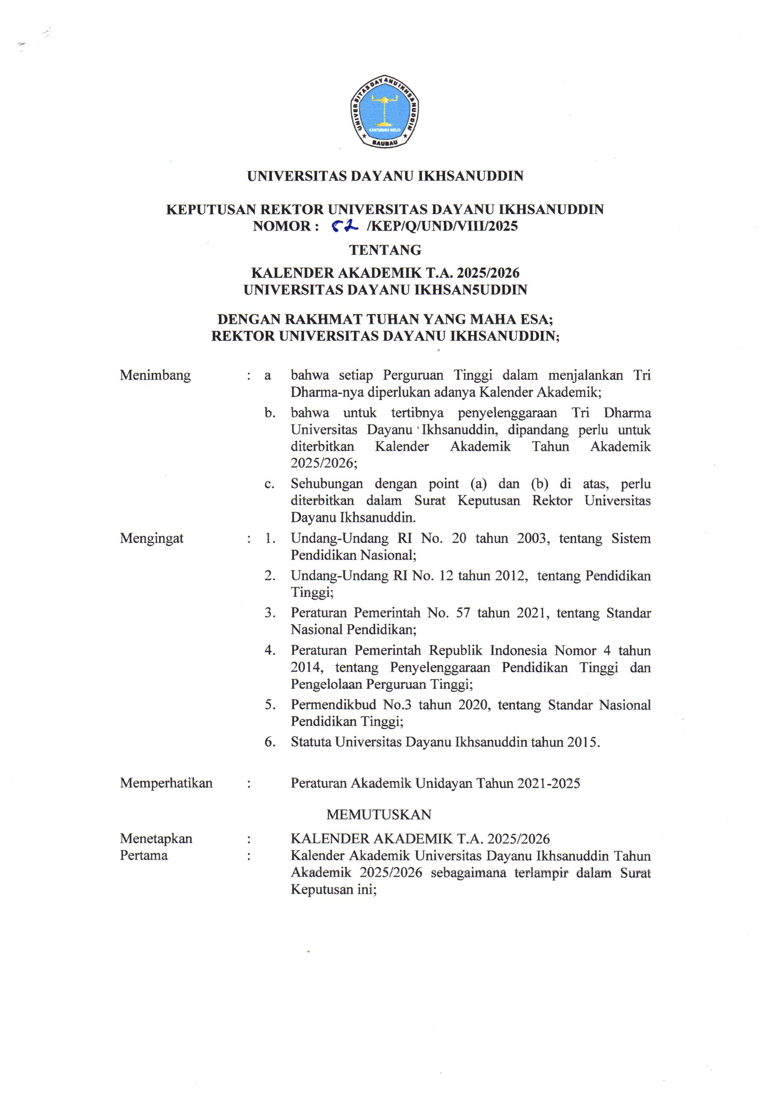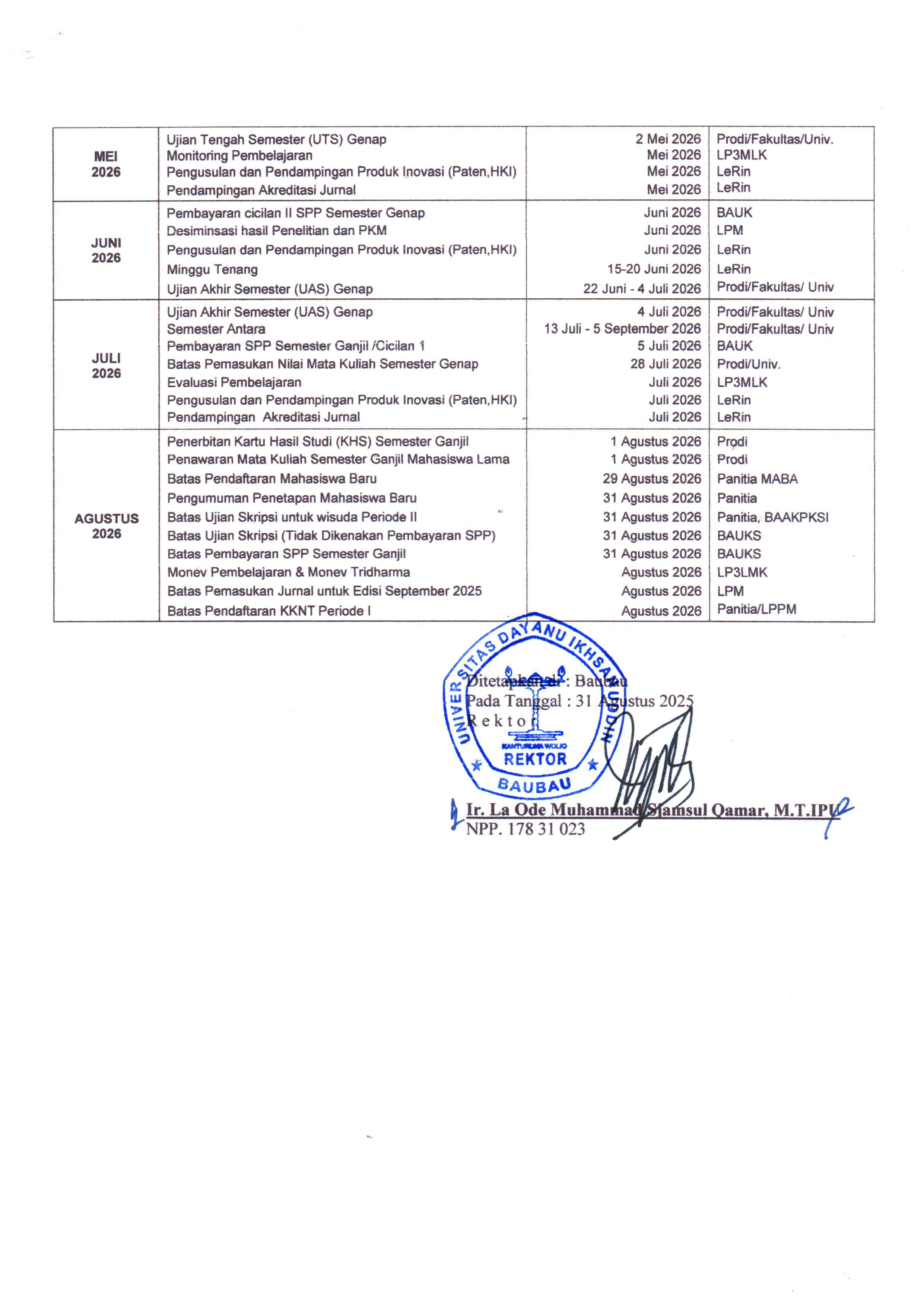 KALENDER AKADEMIK TAHUN AJARAN 2025/2026 GANJIL