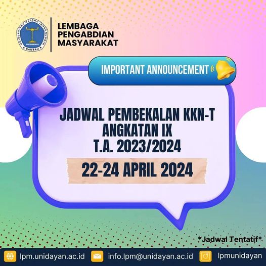 INFO PENTING!!!!! PENGUMUMAN PEMBEKALAN KKN-T ANGKATAN IX T.A. 2023/2024