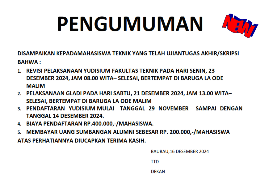 PENGUMUMAN RESMI : INFORMASI PENTING "HARAP DIPERHATIKAN! JADWAL YUDISIUM FAKULTAS TEKNIK BERUBAH