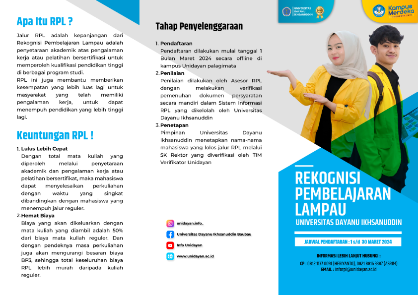 Rekognisi Pembelajaran Lampau alias RPL adalah penyetaraan akademik atas pengalaman kerja bersertifikasi untuk memperoleh kualitas pendidikan tinggi. Mampu bekerja di berbagai bidang karena sudah dibekali dengan berbagai ilmu dan pengetahuan pada bidang teknologi. Pekerjaan yang relatif mudah dan santai, dapat dikerjakan dimanapun dan kapanpun menggunakan koneksi tentunya juga mendapat pengakuan atas Capaian Pembelajaran seseorang yang diperoleh dari pendidikan formal, nonformal, informal, dan/atau pengalaman kerja sebagai dasar untuk melanjutkan pendidikan formal dan untuk melakukan penyetaraan dengan kualifikasi tertentu. RPL ini sangat membantu mahasiswa untuk lebih cepat menyelesaikan masa studinya serta lebih hemat biaya.