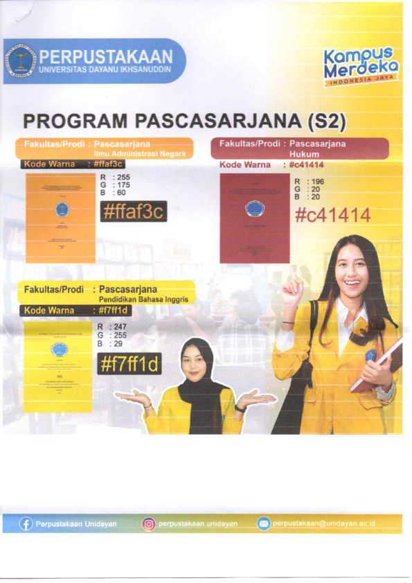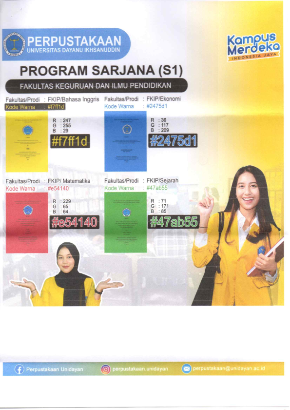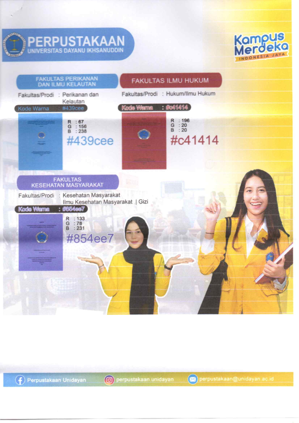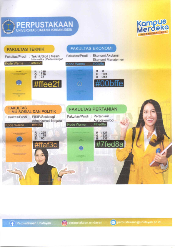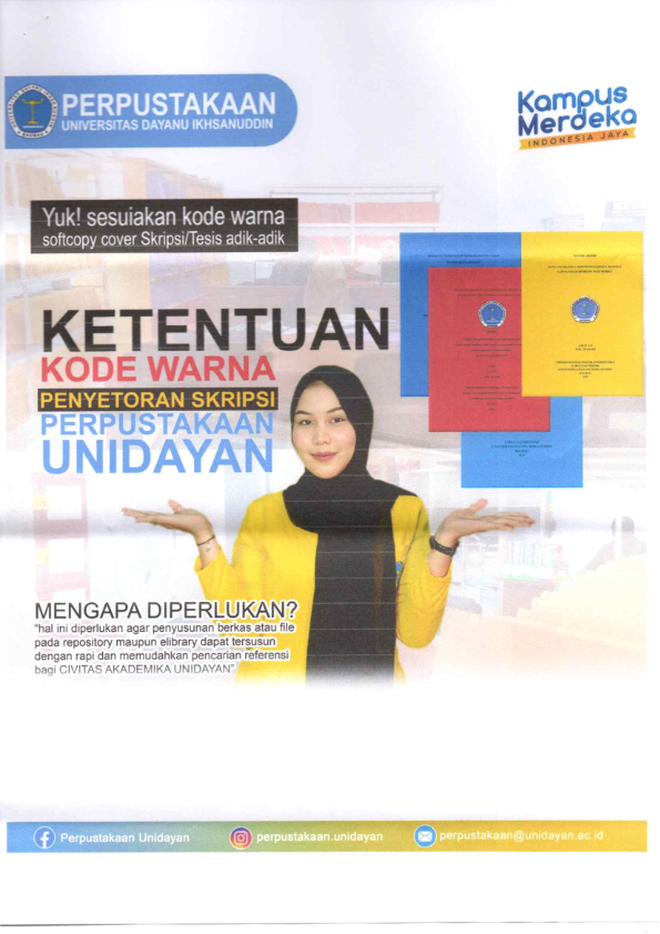 Ketentuan Kode warna penyerahan skripsi telah di atur dan di tetapkan oleh pihak kampus unidayan, yang di mana setiap fakultas memiliki kode warna yang berbeda-beda. jadi diharapkan agar semua mahasiswa khususnya Fakultas Teknik agar memperhatikan KETENTUAN KODE WARNA PENYERAHAN SKRIPSI KHUSUS PENYERAHAN DI PERPUS UNIDAYAN. Untuk informasi lebih lanjut hubungi bapak AHMAD SYAFRIL ETI ( 0853 2222 9077 )