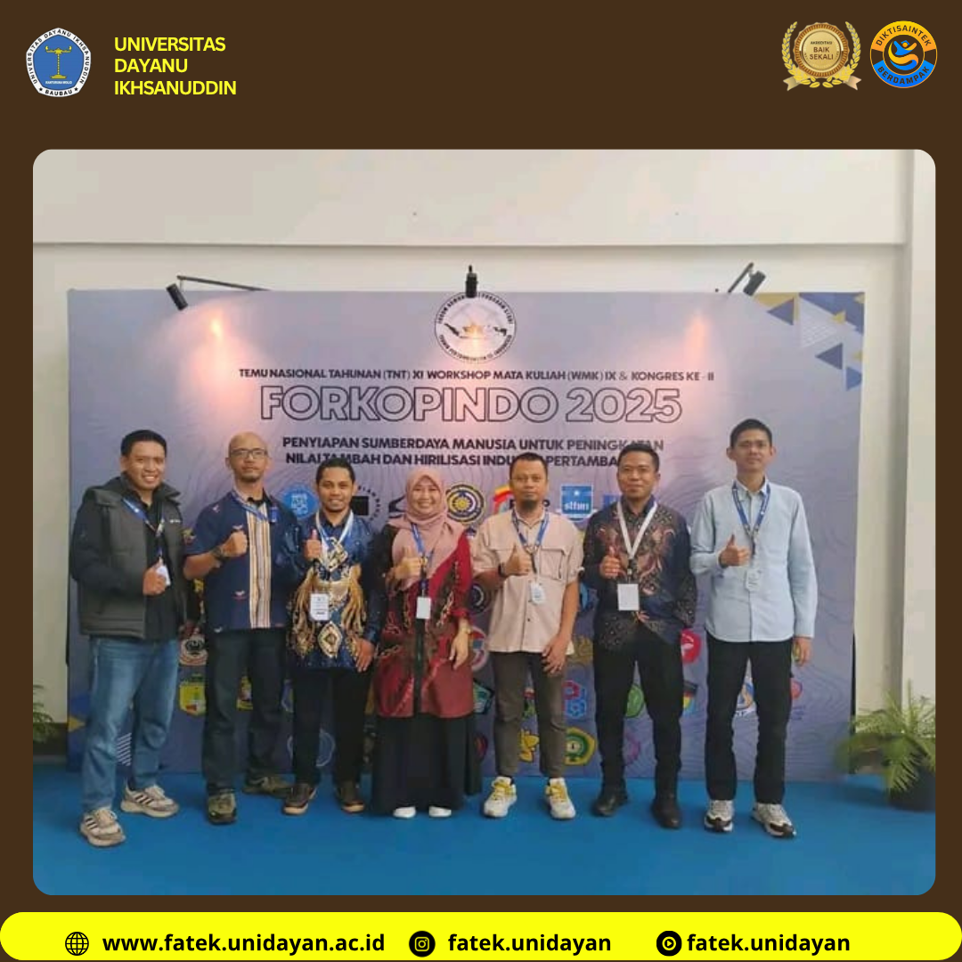 Bandung, 2–3 November 2025 — Dosen Program Studi Teknik Pertambangan Universitas Dayanu Ikhsanuddin (UNIDAYAN) Baubau, Asrim, S.Si., M.Eng., mewakili UNIDAYAN dalam kegiatan Temu Nasional Tahunan (TNT) Forum Komunikasi Program Studi Teknik Pertambangan Indonesia (FORKOPINDO) 2025 yang diselenggarakan di Institut Teknologi Bandung (ITB) dan Universitas Islam Bandung (UNISBA).