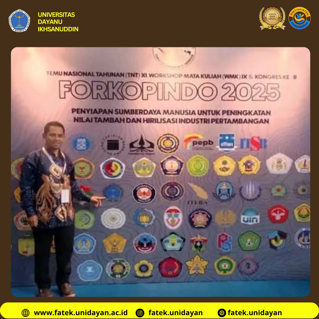 Kegiatan ini juga menjadi ajang penting bagi Program Studi Teknik Pertambangan UNIDAYAN untuk memperkenalkan kiprah akademiknya di tingkat nasional. UNIDAYAN terus berupaya memperkuat peran dosen dan mahasiswa dalam berbagai forum ilmiah, riset kolaboratif, dan kemitraan strategis yang dapat memberikan dampak nyata bagi pengembangan ilmu pengetahuan dan teknologi pertambangan di Indonesia.