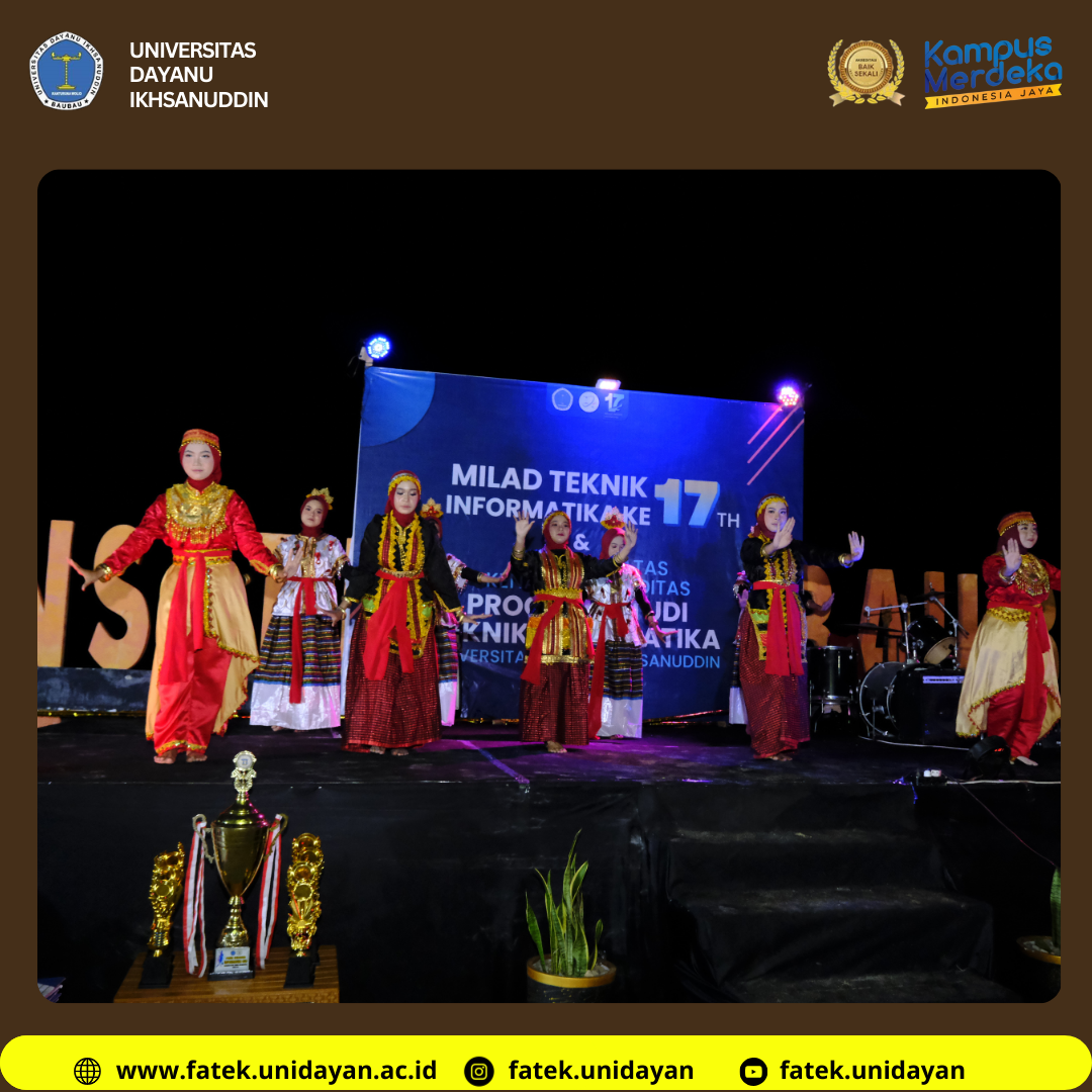 Tidak hanya jajaran kampus, acara ini juga dihadiri oleh seluruh Ketua Himpunan Mahasiswa Fakultas Teknik yang ada di Kota Baubau. Kehadiran mereka menjadi simbol solidaritas antar program studi dalam lingkungan fakultas teknik. Suasana acara semakin meriah ketika para tamu undangan disambut dengan penampilan tarian tradisional yang dibawakan dengan penuh semangat oleh mahasiswa Teknik Informatika. Tarian tersebut menjadi pembuka yang mengesankan dan memperlihatkan perpaduan antara budaya dan teknologi.