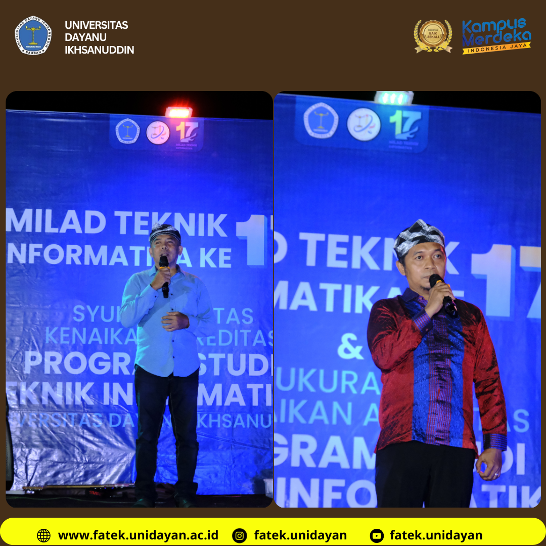 Dalam sambutannya, Ketua Program Studi Teknik Informatika menyampaikan rasa terima kasih kepada semua pihak yang telah berkontribusi terhadap kemajuan program studi. Mulai dari dosen, tenaga kependidikan, mahasiswa, hingga alumni. Beliau juga menegaskan pentingnya menjaga dan meningkatkan kualitas akademik serta layanan pendidikan agar kepercayaan masyarakat terhadap Teknik Informatika UNIDAYAN terus bertumbuh.