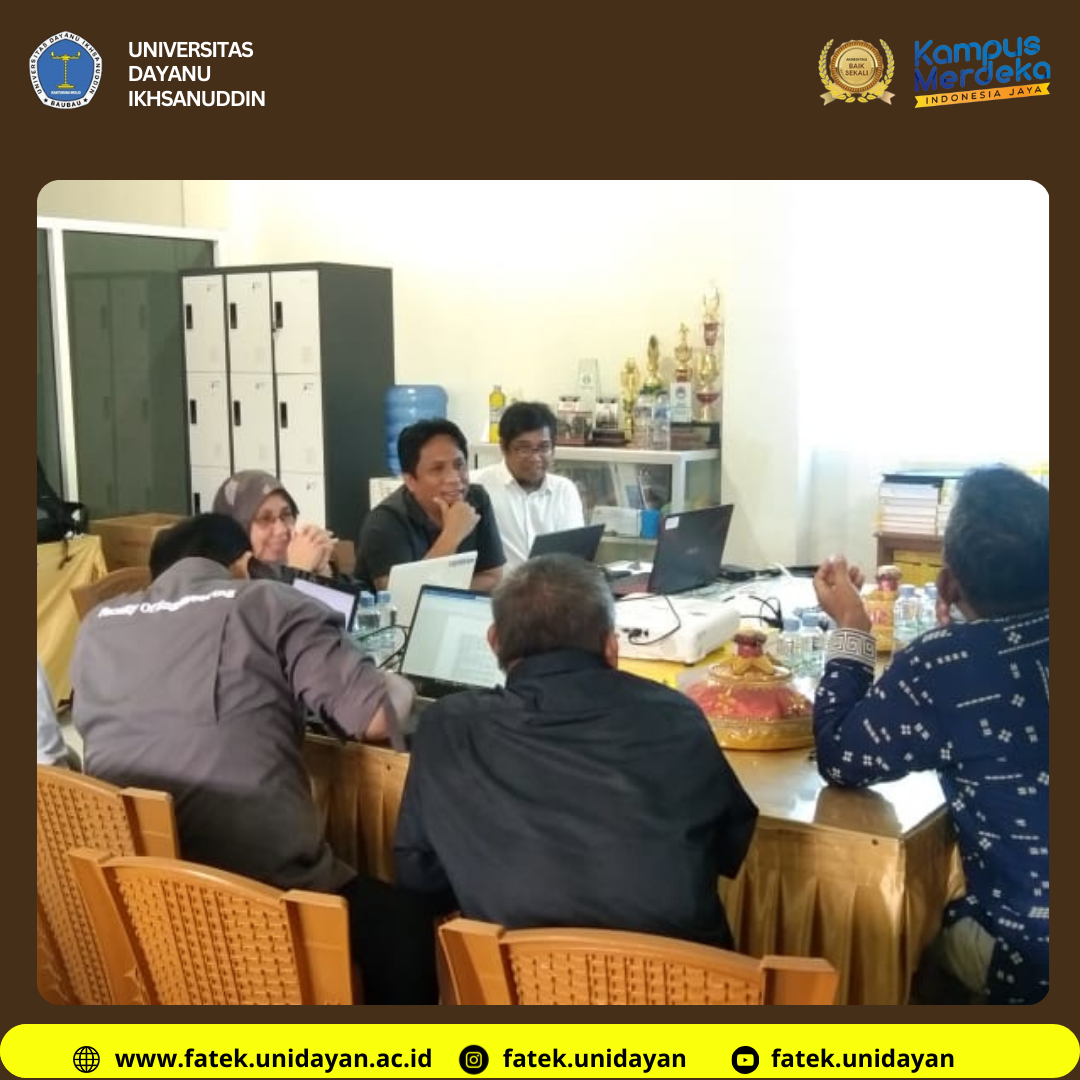 Dalam rangka menjaga dan meningkatkan mutu pendidikan tinggi, Fakultas Teknik Universitas Dayanu Ikhsanuddin mengadakan kegiatan evaluasi dan pemantapan dokumen akreditasi untuk tiga program studi utama, yakni Teknik Sipil, Teknik Mesin, dan Teknik Pertambangan. Kegiatan ini dilaksanakan di ruang rapat Fakultas Teknik dan dihadiri langsung oleh Wakil Rektor I, Prof. Dr. Rasmuin, M.Pd, yang secara aktif terlibat dalam memberikan masukan, kritik konstruktif, serta motivasi terhadap tim pengelola program studi. Kegiatan ini bertujuan sebagai bentuk monitoring dan pembinaan terhadap kesiapan prodi dalam menghadapi proses reakreditasi dari Lembaga Akreditasi Mandiri (LAM) Teknik.