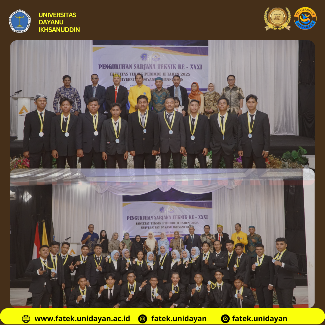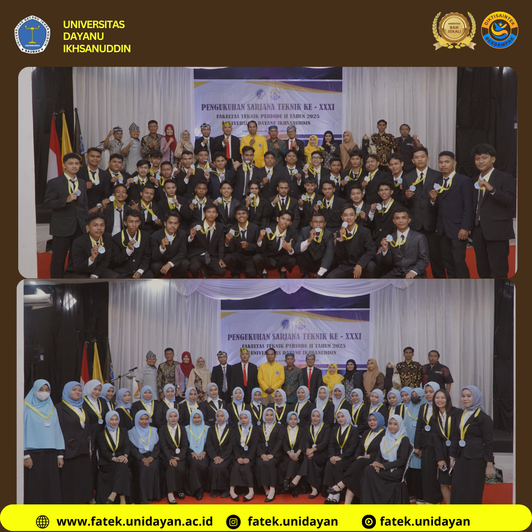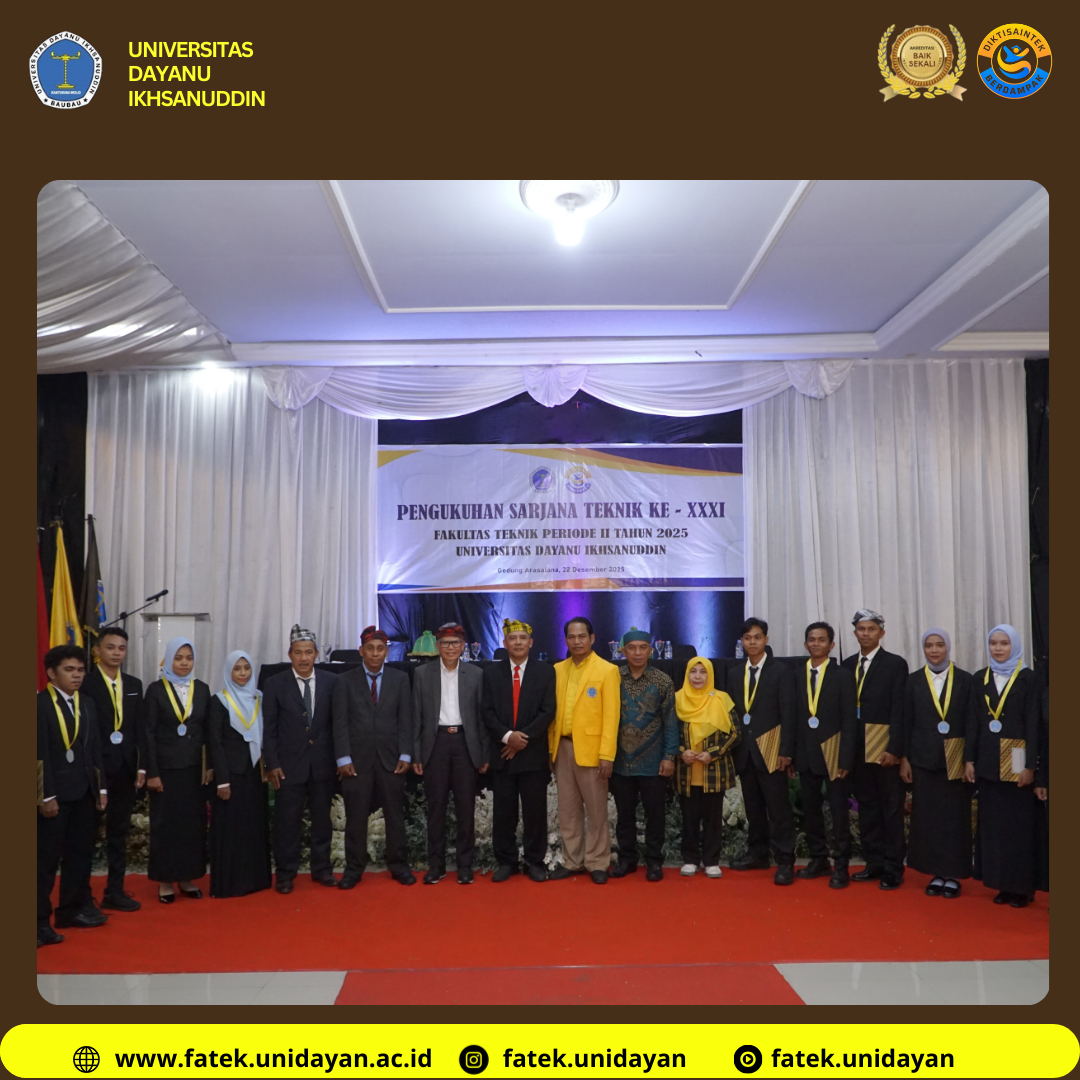 Baubau, 22 Desember 2025, Fakultas Teknik Universitas Dayanu Ikhsanuddin (Unidayan) Baubau kembali menyelenggarakan Pengukuhan Sarjana Teknik ke-XXXI, yang berlangsung khidmat di Gedung Arasalana, Baubau. Kegiatan ini menjadi momentum penting bagi para lulusan sebagai penanda resmi berakhirnya masa studi dan awal pengabdian di dunia profesional. Acara pengukuhan tersebut secara resmi dibuka oleh Wakil Rektor IV Universitas Dayanu Ikhsanuddin, Bapak Samsul Una, M.Pd.