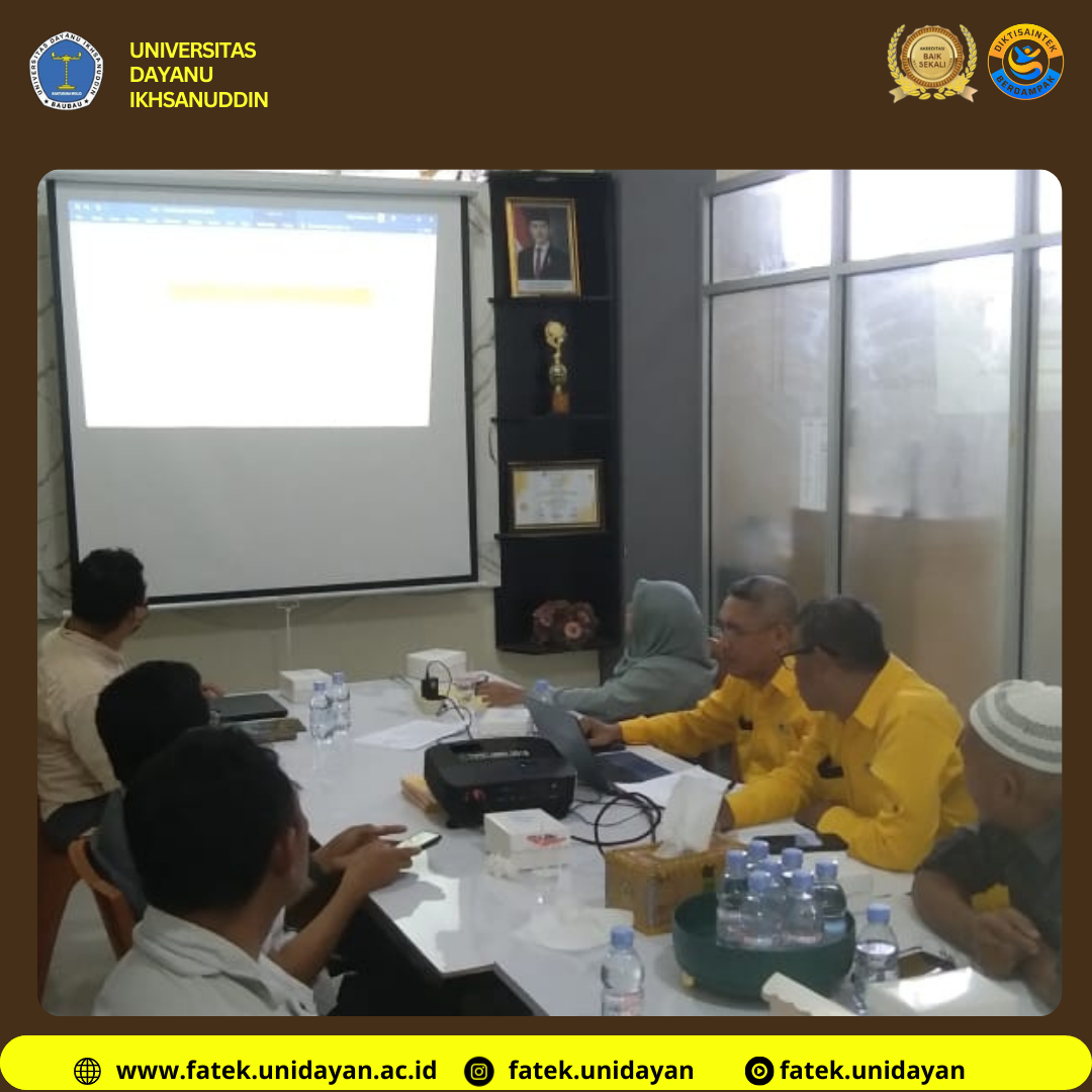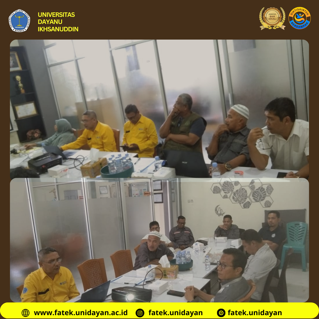 Fakultas Teknik Universitas Dayanu Ikhsanuddin pada hari ini melaksanakan Rapat Senat Fakultas Teknik Tahun 2026 yang bertempat di Ruang Rapat Fakultas Teknik. Kegiatan ini dipimpin langsung oleh Dekan Fakultas Teknik, Ir. Hilda Sulaiman Nur, S.T., M.T. dan dihadiri oleh pimpinan fakultas, anggota senat, ketua program studi, serta dosen di lingkungan Fakultas Teknik Universitas Dayanu Ikhsanuddin.