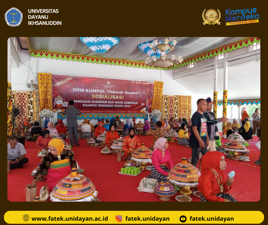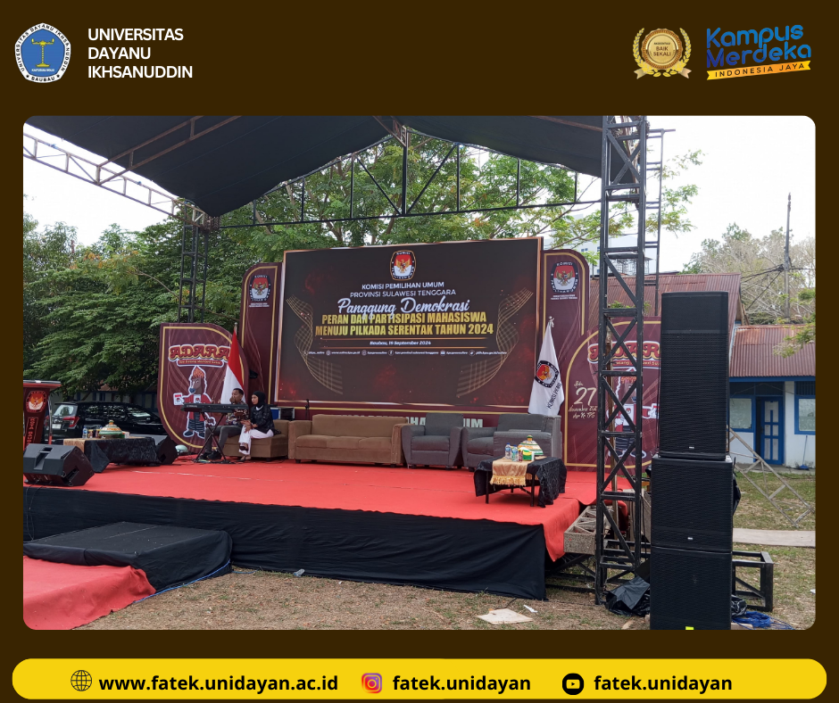 Kegiatan sosialisasi Komisi Pemilihan Umum (KPU) Provinsi Sulawesi Tenggara melalui program "Panggung Demokrasi" berlangsung dengan meriah dan dihadiri oleh seluruh mahasiswa Universitas Dayanu Ikhsanuddin (Unidayan). Acara ini mengangkat tema "Peran dan Partisipasi Mahasiswa dalam Pilkada Serentak 2024," bertujuan untuk meningkatkan kesadaran politik dan keterlibatan mahasiswa dalam proses demokrasi. Dalam kesempatan ini, Bapak Mochammad Afifuddin, S.Th.I., M.Si, selaku Pimpinan KPU RI, memberikan kuliah umum yang sangat informatif dan interaktif. Beliau menjelaskan peran strategis KPU dalam menyelenggarakan pemilu yang adil dan transparan, serta menekankan pentingnya partisipasi aktif mahasiswa sebagai generasi muda dalam menentukan arah kepemimpinan daerah. Diskusi ini tidak hanya memberikan wawasan baru bagi mahasiswa, tetapi juga mendorong mereka untuk menjadi pemilih yang cerdas dan bertanggung jawab. Dengan antusiasme tinggi, mahasiswa Unidayan berpartisipasi aktif dalam sesi tanya jawab, menggali lebih dalam tentang isu-isu terkini seputar pemilu dan tantangan yang dihadapi. Diharapkan, melalui kegiatan ini, mahasiswa tidak hanya memahami hak dan kewajiban mereka sebagai pemilih, tetapi juga terinspirasi untuk berperan serta dalam menjaga integritas pemilu, sehingga menciptakan demokrasi yang lebih baik dan berkelanjutan di Sulawesi Tenggara. Acara ini menjadi momen penting bagi Unidayan untuk menegaskan komitmennya dalam mencetak generasi yang tidak hanya akademis unggul, tetapi juga peka terhadap dinamika sosial dan politik di sekitarnya.